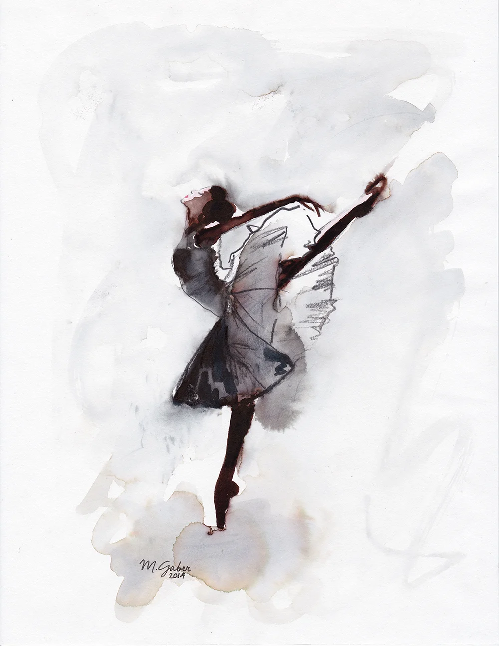 watercolor, pencil, charcoal and ink on paper